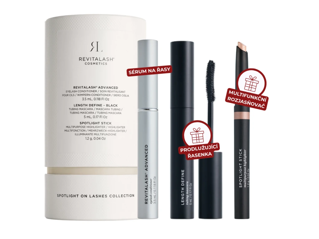 Obdarujte sebe nebo někoho blízkého touto svěží jarní sadou na řasy. Dárková kolekce obsahuje sérum na řasy RevitaLash® Advanced 3,5 ml, vyvinuté očním lékařem a oceněné kosmetickými cenami. Společně s řasenkou Length Define (odstín black) a multifunkční rozjasňovací tyčinkou tvoří kompletní sadu pro krásné, dlouhé a výrazné řasy. Produkty poskytují komplexní péči a jsou zabalené v elegantním dárkovém balení, které potěší na první pohled.