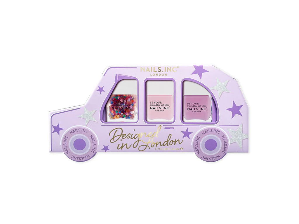 Objavte vianočnú kolekciu manikúry s tromi najnovšími odtieňmi v unikátnom balení inšpirovaného londýnskym taxi. Tento design v prekvapivej fialovej farbe ozdobí každú toaletku. Laky s patentovanou receptúrou nails.inc zaručujú dlhotrvajúci výsledok a široký štetec umožňuje bezchybnú aplikáciu. Ideálna ako vianočný darček alebo na spríjemnenie sviatočnej prípravy, ponúka tri odtiene pre kombináciu podľa nálady. Balenie obsahuje laky: Heartfelt Holidays, May Your Day Sleigh a Nutcracker Nouveau.