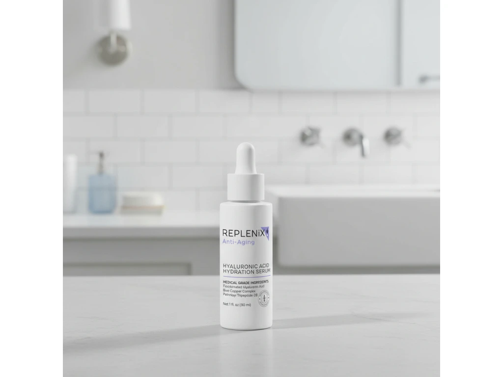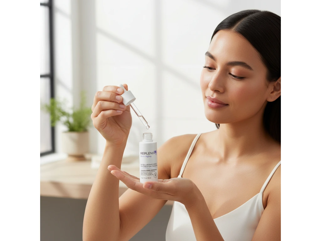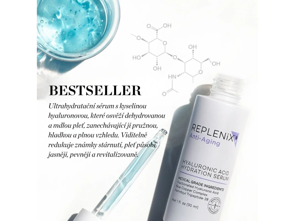 Replenix Hyaluronic Acid Hydrating Serum je intenzívne hydratačné pleťové sérum s kyselinou hyalurónovou, ktorá pomáha viazať vlhkosť v pokožke a podporuje jej prirodzenú hydratáciu. Ľahká, rýchlo sa vstrebávajúca textúra pomáha zlepšiť pružnosť pleti, vyhladzuje jemné linky spôsobené dehydratáciou a zanecháva pleť sviežu, jemnú a viditeľne hydratovanú. Pri pravidelnom používaní pomáha sérum udržiavať pleť hladšiu, pružnejšiu a zdravšie vyzerajúcu.