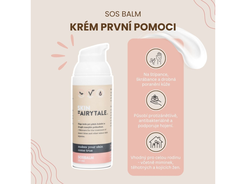 SosBalm je prírodný krém prvej pomoci, ktorý si hravo poradí s drobnými kožnými problémami – od štípancov a odrenín až po suchú, popraskanú či svrbivú pokožku. Pôsobí rýchlo, šetrne a účinne, a je tak ideálny ako malá domáca lekárnička v jednom praktickom balení. Ľahká textúra krému sa rýchlo vstrebáva, nezanecháva mastný film a je vhodná na každodenné použitie aj akútne situácie.