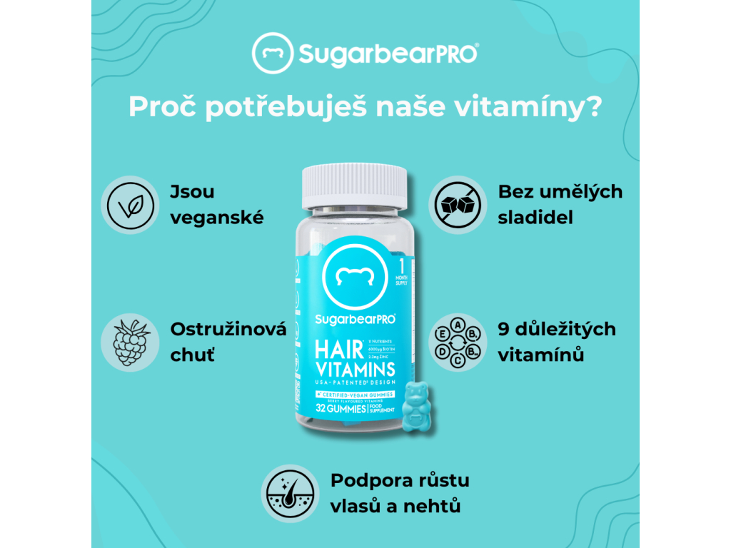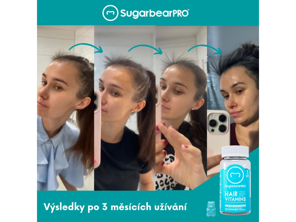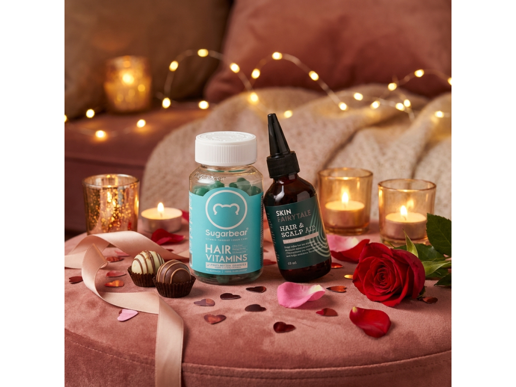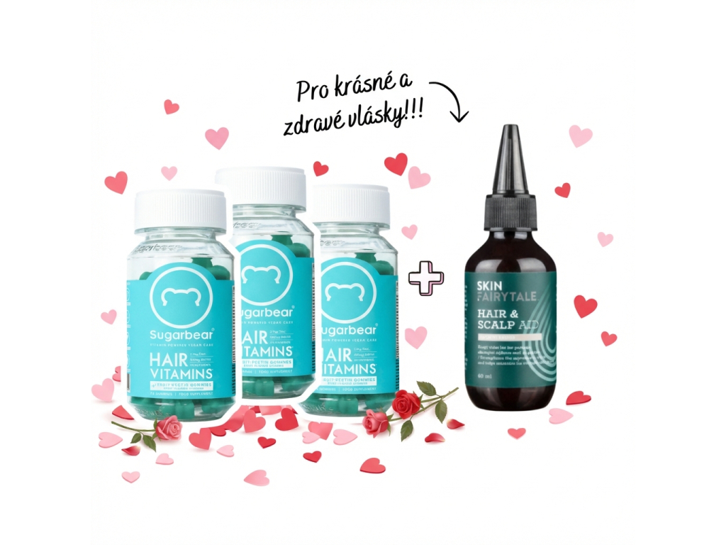 Daruj svojim vlasom Valentínsku lásku 💕 – toto balenie obsahuje 3 fľaštičky SugarBearPRO po 32 medvedíkoch a SkinFairytale Growth Serum, ktoré poskytujú kompletnú starostlivosť o vlasy. Vitamíny vyživujú a posilňujú vlasy zvnútra, zatiaľ čo sérum aktívne stimuluje korienky pre zdravšie, hustejšie a žiarivejšie vlasy každý deň.