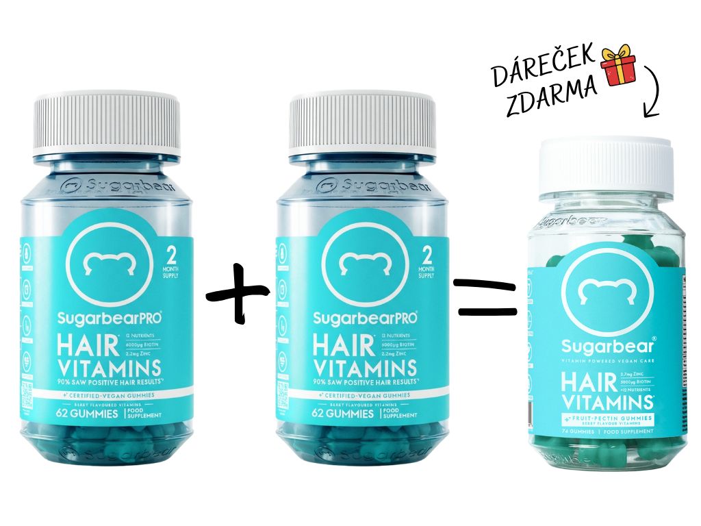 Obľúbené vitamíny na vlasy SugarbearPRO vám doprajú potrebnú dávku účinných látok pre krásne a zdravé vlasy. Medvedíky SugarbearPRO obsahujú dôležité vitamíny a minerály vhodné pre vlasy a nechty, ako sú napríklad biotín, zinok, vitamín D alebo Omega 3 mastné kyseliny. Doprajte si maškrtenie bez výčitiek a doprajte svojim vlasom to, čo potrebujú.