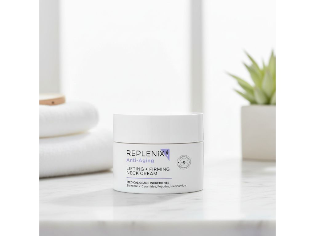 REPLENIX Liftingový krém na krk je vedecky vyvinutý dermatológmi pre citlivú oblasť krku a dekoltu. Táto ľahká, hydratačná a pH vyvážená formula pomáha spevniť pokožku, podporuje tvorbu kolagénu a elastínu a viditeľne redukuje jemné linky a vrásky. Pravidelné používanie prispieva k hladšej, pevnejšej a mladistvejšej pokožke.